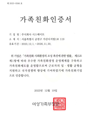 제 2023-0586 호 (가족친화 인증기업)
