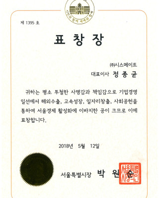 제 1395 호 (서울특별시장 표창)
