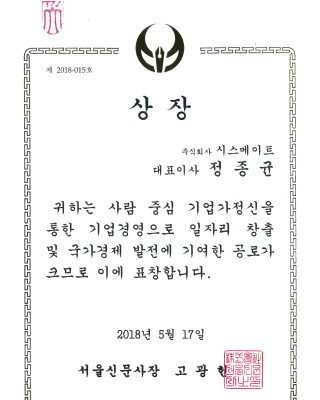 제 2018-015 호 (서울신문사장 표창)