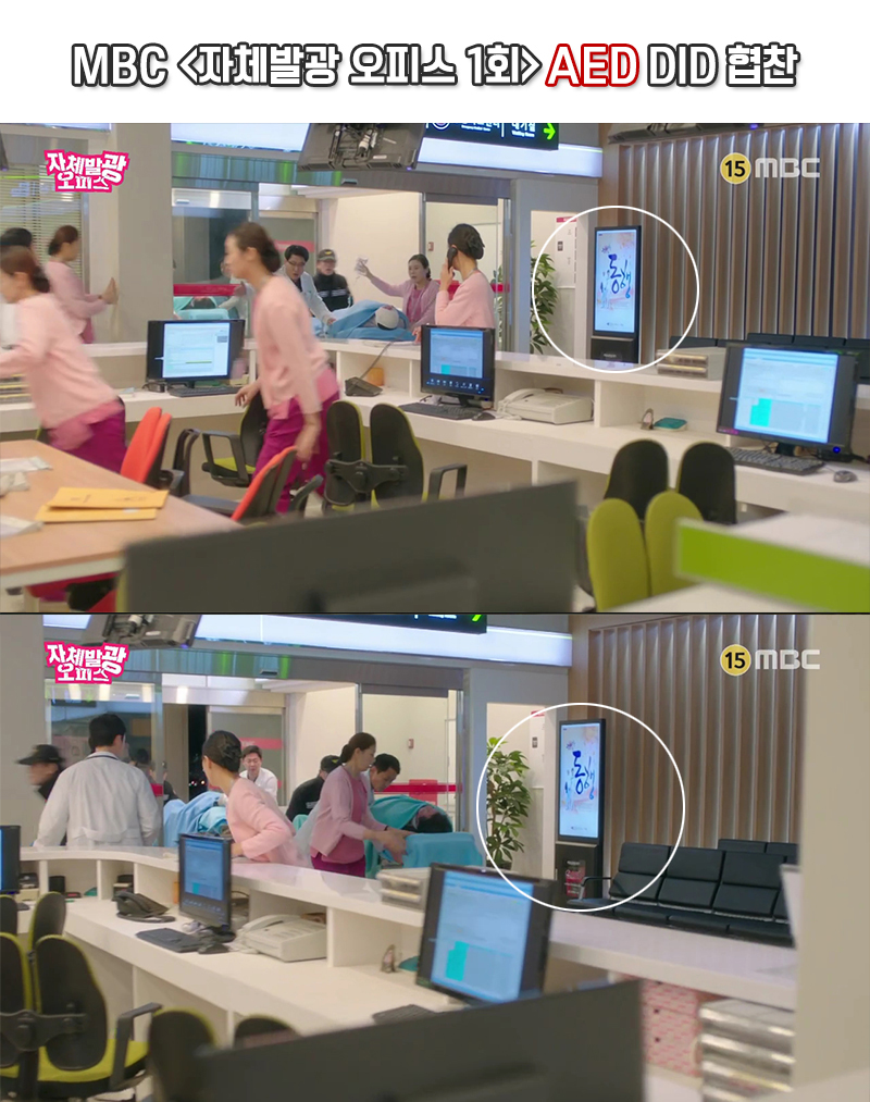 지난 3월 15일 방송된 '자체발광 오피스' 1회 응급실 장면에서 AED DID가 노출 되었습니다.