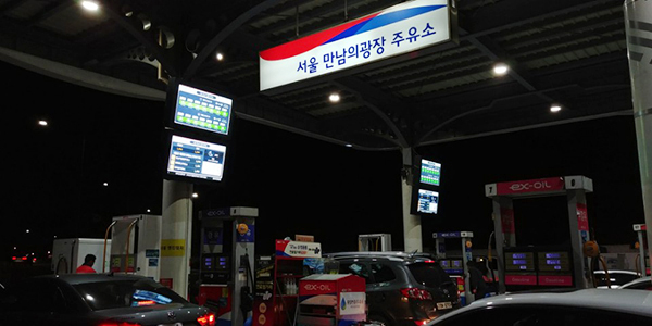 | 서울 만남의 광장 휴게소 주유소에 설치된 시스메이트의 '옥외형 디지털 사이니지'/사진제공=시스메이트 |
