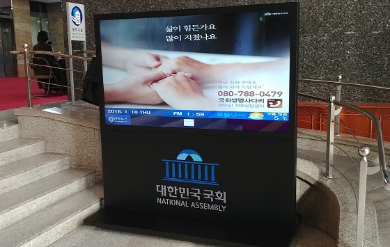 시스메이트가 국회에 납품한 75인치형 디지털사이니지/사진제공=시스메이트