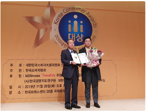 <2019 대한민국소비자대상> 시상식에서 '소비자친화브랜드' 부문 대상을 수상하였습니다.