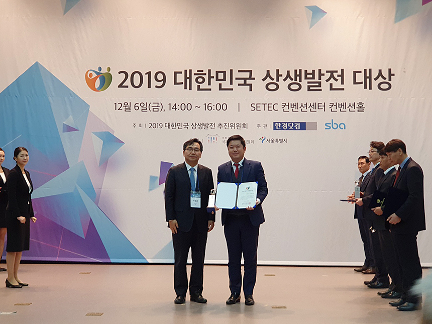 <2019 대한민국 상생발전 대상> 시상식에서 '지역상생' 부문 대상을 수상하였습니다.