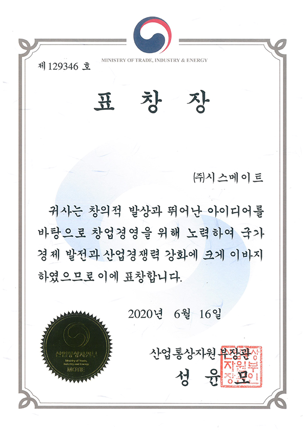 이바지한 공로로 산업통상자원부 장관 표창을 수상했습니다.