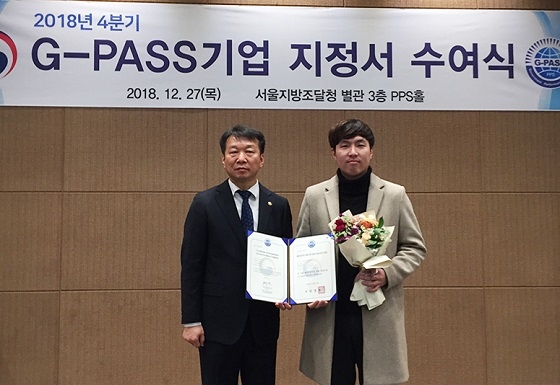 시스메이트는 27일 서울지방조달청 별관 3층 PPS홀에서 2018년도 4분기 G-PASS기업 지정서를 받았다.