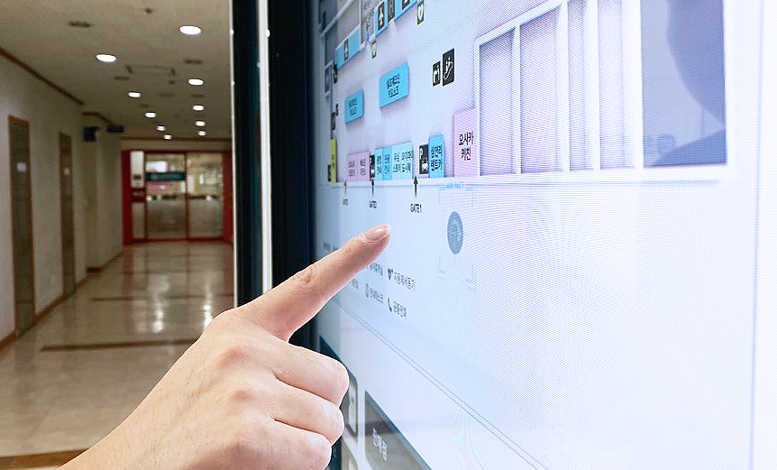 불특정 다수의 사용자가 직접 터치하는 스크린의 사용으로 인한 파손을 방지하고, 교차 감염과 위생문제를 사전 예방할 수 있다는 점이 가장 큰 특징이다.
