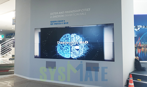 대전광역시청 홍보관에 설치된 (주)시스메이트의 55인치 멀티비전 디지털 사이니지