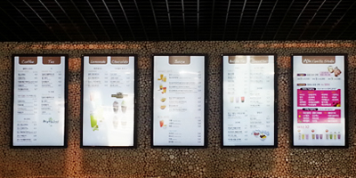 설치형태 : 메뉴판 세로형 벽걸이, 광고패널 가로형 벽걸이