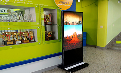 중앙탑중학교에 설치한 55인치 스탠드형 DID입니다. 임시영상이 보여지고 있습니다.