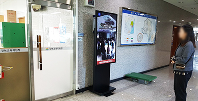 제품하단에는 이동바퀴가 장착되어 있어 건물내 어디로든 편리한 이동이 가능합니다.