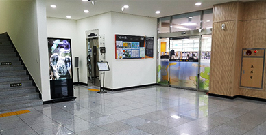 2대의 디지털사이니지가 벽걸이방식으로 시공되었으며