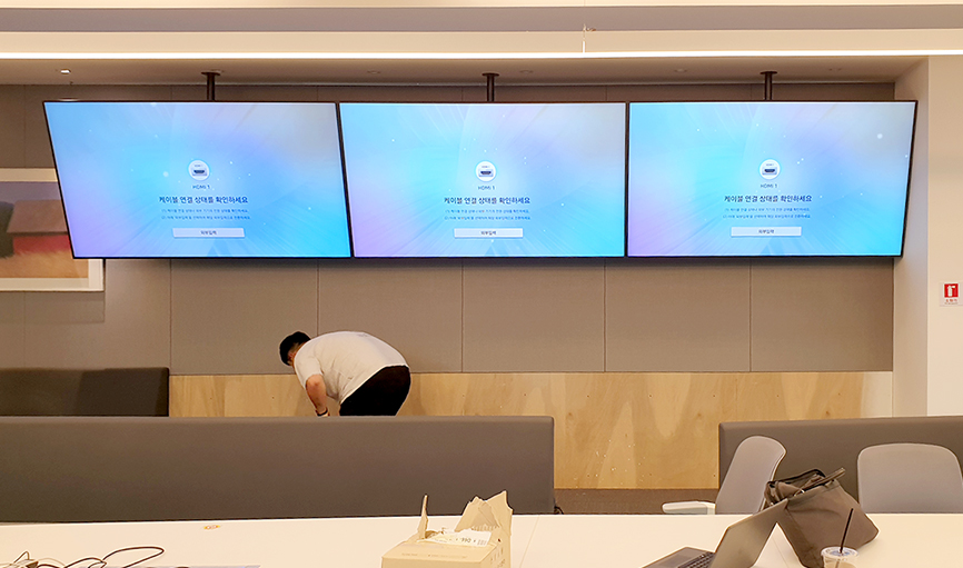 멀티비전 전용 브라켓을 사용하여 균일한 간격으로 설치하는 방식으로 진행 되었습니다.