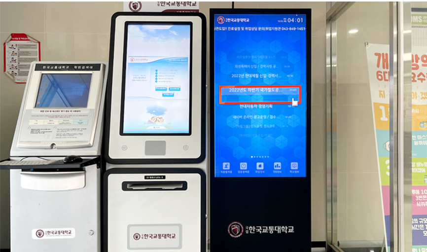 4K UHD 화면으로  학원 홍보용 콘텐츠를 송출하는 디지털 게시판으로 활용됩니다.