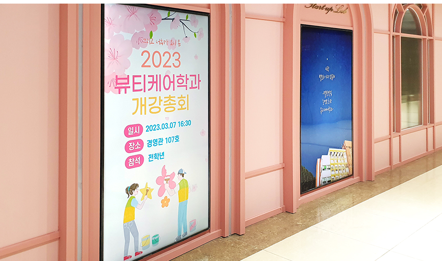 병원 안내 및 공지, 진료과목 등 다양한 정보를 송출하는 디지털 게시판으로 활용됩니다.