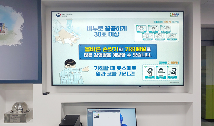 교육원 이용객을 위한 각종 안내,공지사항 및 홍보용 콘텐츠를 송출하는 디지털 게시판으로 활용됩니다.