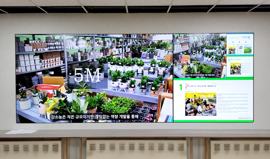 국립통일교육원에 설치된 65인치 스탠드 사이니지는 500cd의 고휘도 밝기 제품으로,