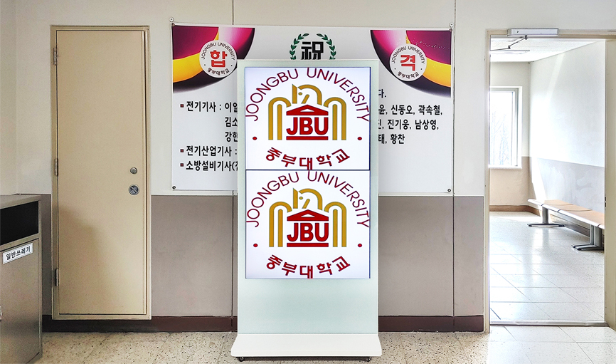 강서구의회 로비에 설치 된 55인치 시스메이트 스탠드 사이니지는