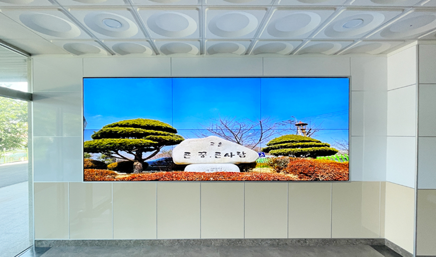 내방객을 위한 웰컴보드 및 각종 사내 공지사항, 홍보용 콘텐츠 송출하는 디지털 게시판으로 활용됩니다.