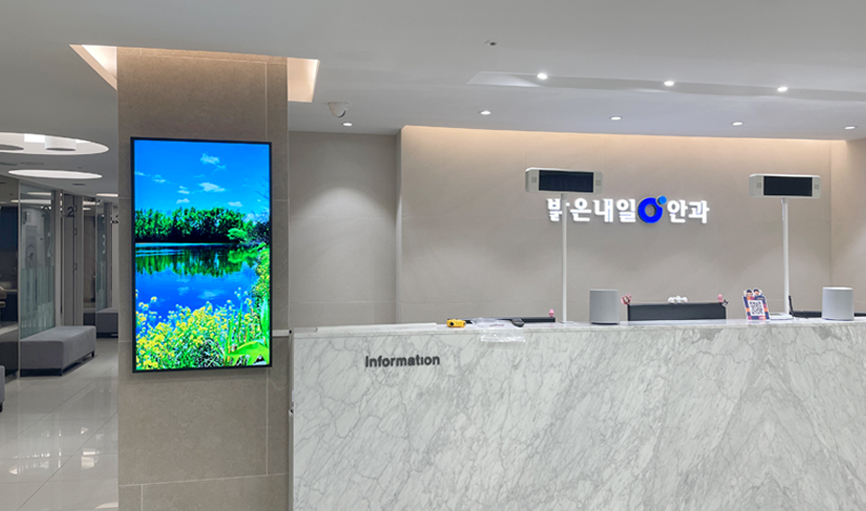 공장 내 각종 공지, 안내사항 및 홍보용 콘텐츠를 송출하는 디지털 게시판