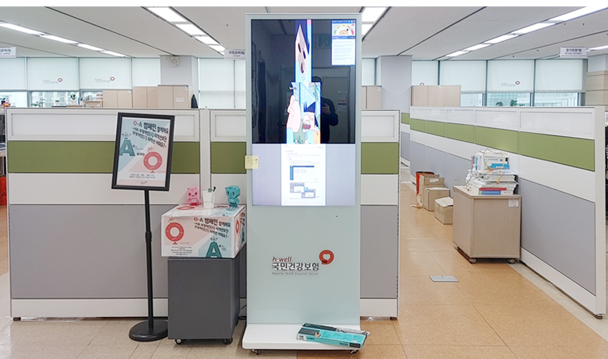 내방객을 위한 웰컴보드 및 각종 사내 공지사항, 홍보용 콘텐츠 송출하는 디지털 게시판