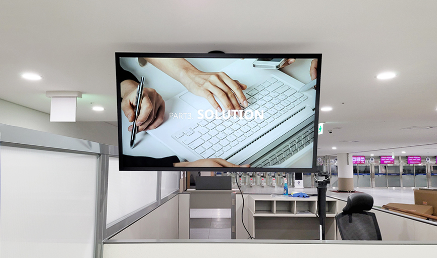 4K UHD 화면으로  제품 홍보 및 브랜드 홍보용 콘텐츠를 송출하는 디지털 게시판으로 활용됩니다.