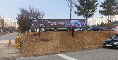 현수막형으로 설치된 LED 전광판은 실외환경에 적합한 밝기와 모듈구성으로 눈부심이 없으며,