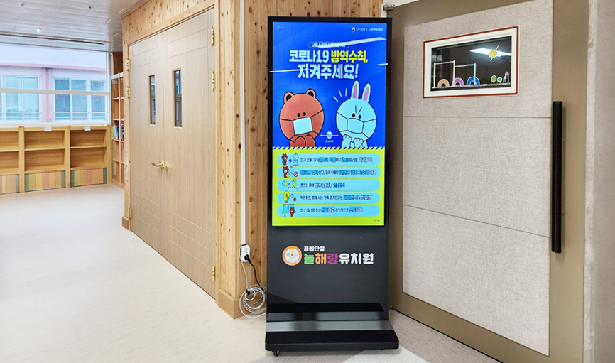 전시 홍보 영상 및 다양한 미디어 콘텐츠를 4K UHD의 초고화질 해상도로 송출하는 미디어월로 활용됩니다.