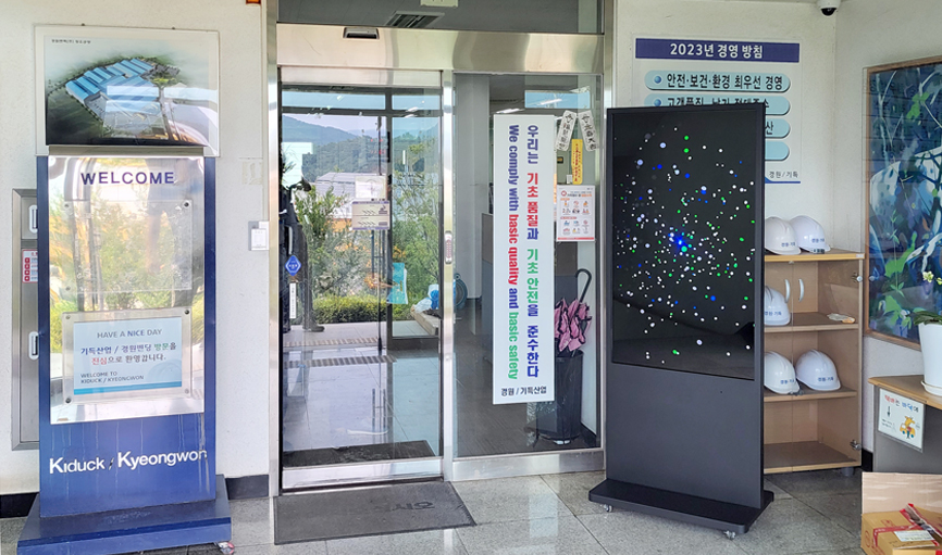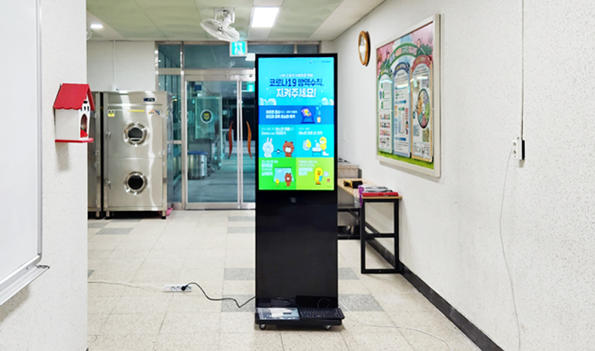 4K UHD 화면으로 매장 내 메뉴보드 및 홍보용 콘텐츠를 송출하는 디지털 게시판으로 활용됩니다.