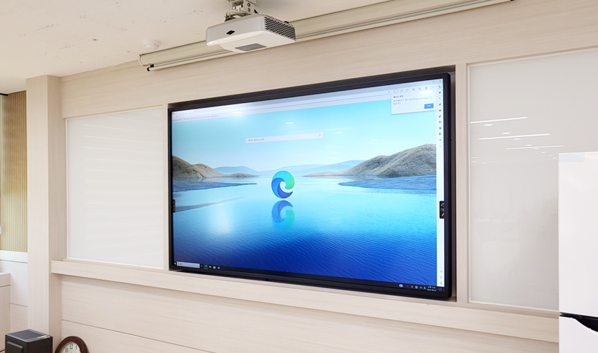 매립형으로 시공된 디지털 사이니지는 깔끔한 인테리어 효과와 함께 사용자 눈높이에 맞춰 시공되어 높은 시인성을 자랑합니다.