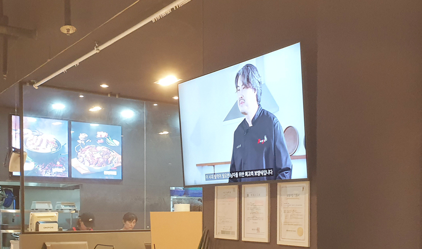 해당 제품은 네트워크 타입 솔루션이 적용된 시스메이트 사이니지로